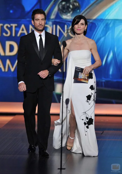 Los actors Julianna Margulies y Dylan McDermott presentan el Emmy 2013 al mejor actor en drama.