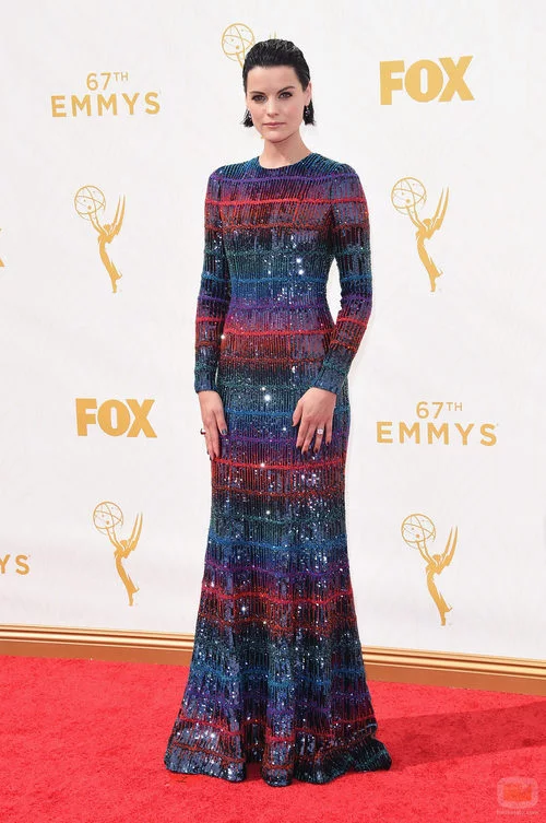 La actriz Jaimie Alexander, de la nueva serie 'Blindspot', en la alfombra roja de los Premios Emmys 2015 en el Microsoft Theater de Los Ángeles.
