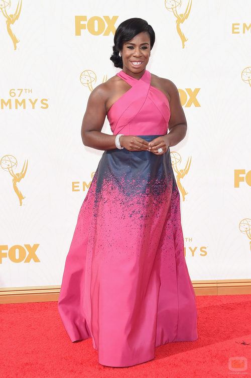 La actriz de 'Orange is the New Black', Uzo Aduba, a su paso por la alfombra roja de los Emmy 2015 en Los Angeles.