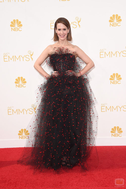 La actriz de 'American Horror Story', Sarah Paulson, a su paso por la alfombra roja de los Emmy 2014 en Los Angeles.