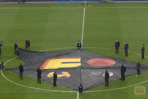 La lona situada en el centro del campo empieza a mostrar el logo del nuevo canal.