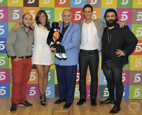 Merche, Kiko Rivera, Risto, José Luis Moreno y El Sevilla acompañan al presentador.