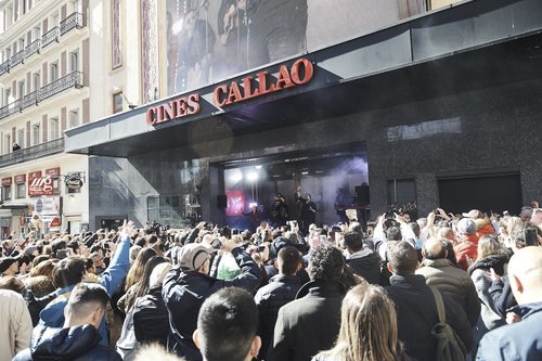 El público afortunado que se encontraba en Callao cuando Antonio Orozco y Luis Fonsi aparecía por sorpresa para dar un concierto.