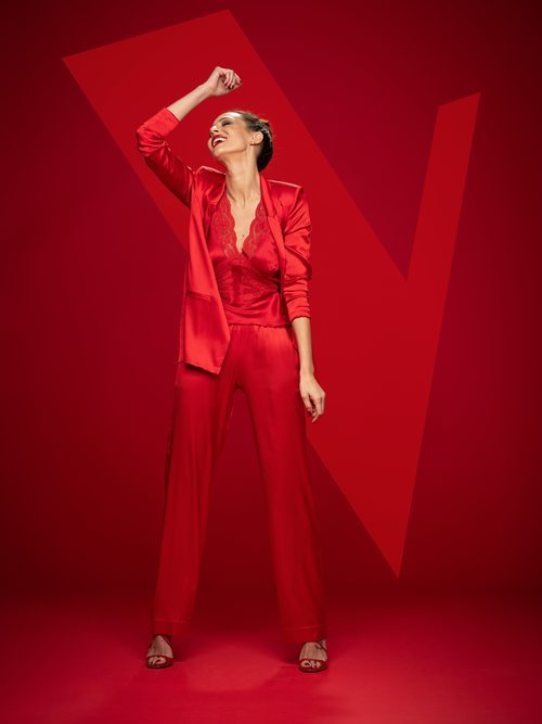 La presentadora viste completamente de rojo, color del programa, para las imágenes promocionales como presentadora del formato en Antena 3.