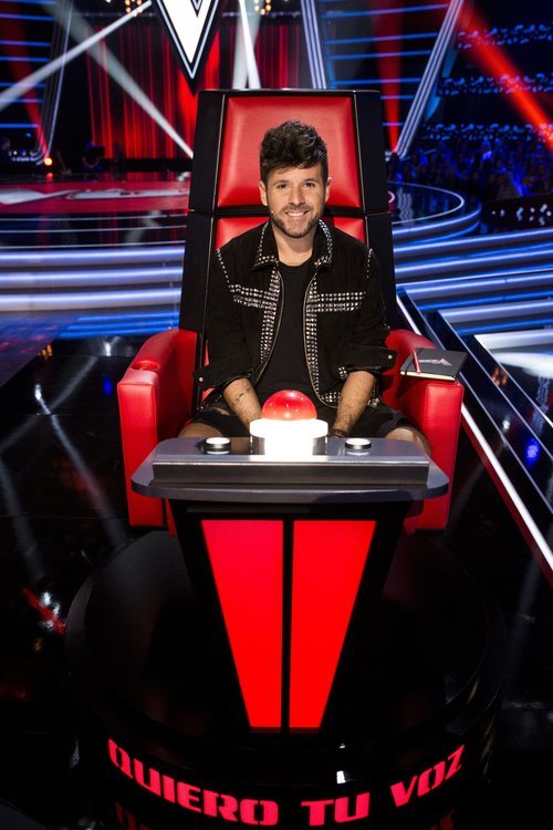 El cantante español Pablo López es uno de los coaches de 'La Voz' en Antena 3 y posa muy sonriente en su sillón de coach.
