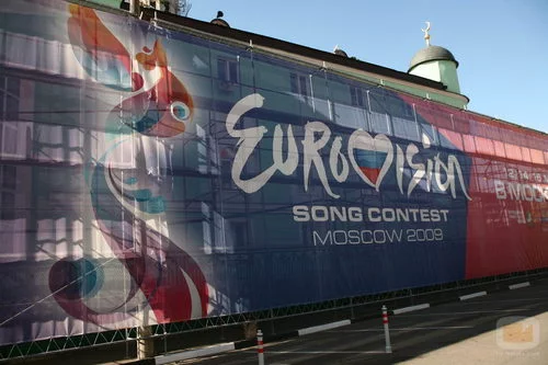 Afueras del Olympiyski Indoor Arena de Moscú donde se celebra el Festival de Eurovisión 2009.