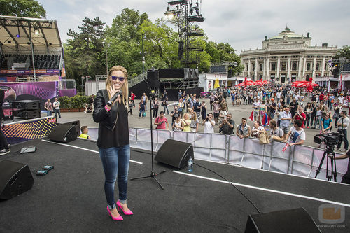 Edurne ensaya en el Eurovision Village durante Eurovisión 2015