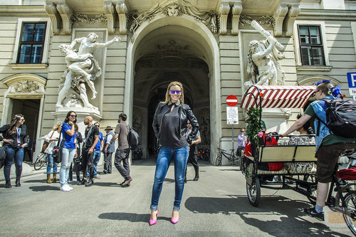 Edurne posa frente al Hofburg de Viena durante Eurovisión 2015