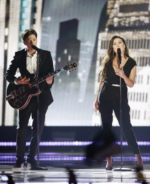Los representantes de Estonia, Elina Born & Stig Rästa, durante su actuación en la Primera Semifinal de Eurovisión 2015.