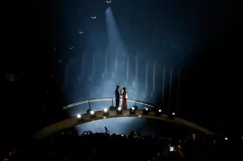 Ieva Zasimauskaité interpretan la canción 'When We're Old' representando a Lituania durante la Gran Final del Festival de Eurovisión 2018.