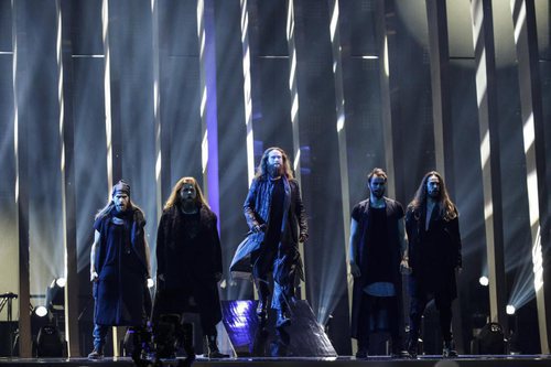 Rasmussen, los representantes de Dinamarca, en su primer ensayo de Eurovisión 2018