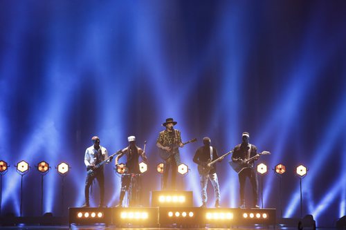 El cantante Waylon (Países Bajos) interpreta 'Outlaw In 'Em' durante la Gran Final del Festival de Eurovisión 2018.
