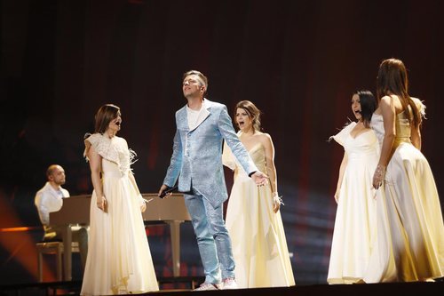 Vanja Radovanovic, representante de Montenegro, en su primer ensayo de Eurovisión 2018 interpretando la canción 'Inje'.