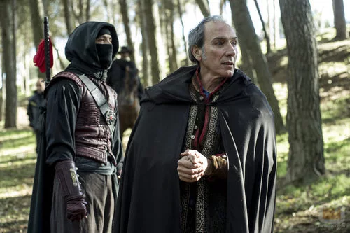 (8x02) Malasangre (Eusebio Poncela) y Gonzalo de Montalvo (David Janer) en mitad del bosque en un capítulo en el que ha conseguido escapar de su cautiverio
