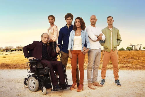 Foto promocional de los protagonistas del nuevo thriller de Telecinco, 'El accidente': Inma Cuesta, Quim Gutiérrez, Alain Hernández, Berta Vázquez, Eusebio Poncela y Joel Bosqued.