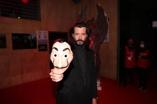 Álvaro Morte, El Profesor en 'La Casa de Papel', posa con la conocida máscara empleada por la banda en la serie de Netflix.