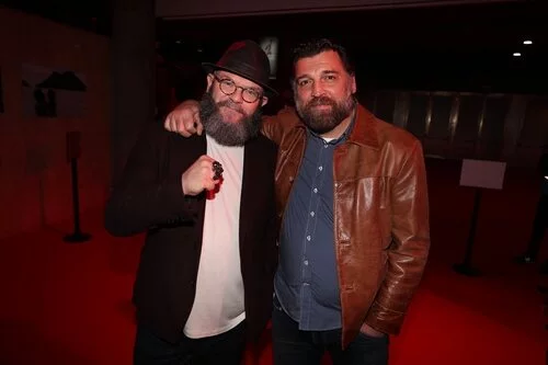 Darko Peric y Hovik Keuchkerian, Helsinki y Bogotá en 'La Casa de Papel', posan juntos durante la presentación de la entrega final de la serie de Netflix.