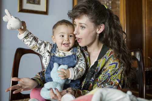 Karina Saavedra, interpretada por Elena Rivera, juega con Olivia en uno de los nuevos episodios de 'Cuéntame cómo pasó'.
