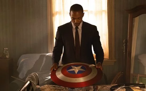 Anthony Mackie con el escudo del Capitán América en 'Falcon y el Soldado de Invierno'