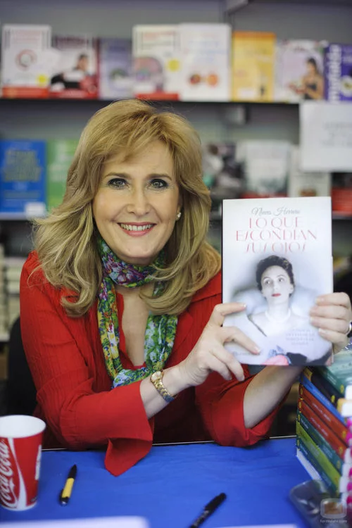 La periodista Nieves Herrero firmando ejemplares de su libro en la Feria del Libro 2014 de Madrid.