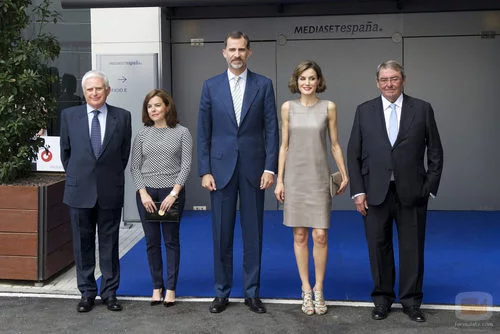 Los reyes, Flipe y Letizia, han sido recibidos por Paolo Vasile y Alejandro Echevarría, consejero delegado y presidente de Mediaset España, y por la vicepresidenta de gobierno, Soraya Saenz de Santa María.