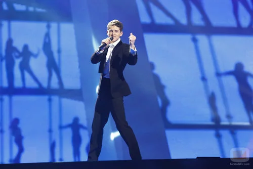 El representante de Lituania canta la canción "Love is Blind" en el Festival de Eurovisión 2012 de Baku.