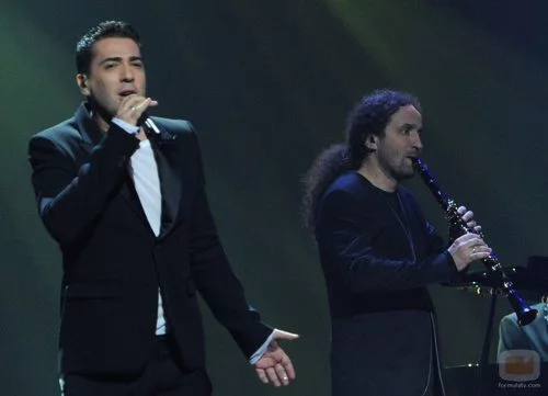 El representante de Serbia, Zeljko Joksimovic, canta "Nije Ljubav Stvar" en el Festival de Eurovisión 2012.