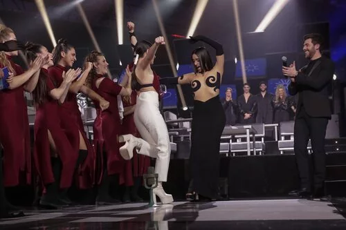Las ganadoras de las dos primeras ediciones del Benidorm Fest celebran el triunfo de la ilicitana bailando juntas.