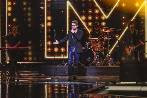 Sobre el escenario de del Benidorm Fest 2023 se sube Manuel Carrasco como artista invitado abriendo la gala de la gran Final.