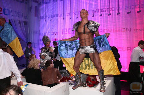 Un acompañante de la cantante ucraniana Svetlana Loboda durante las votaciones del festival.