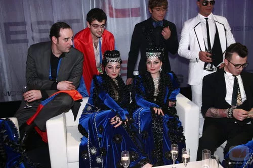 Inga & Anush, de Armenia, en la green room durante la final de Eurovisión 2009.