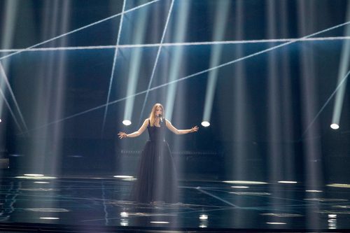 La joven cantante Blanche, representante de Bélgica, interpreta la canción "City Lights" durante la Gran Final de Eurovisión 2017.