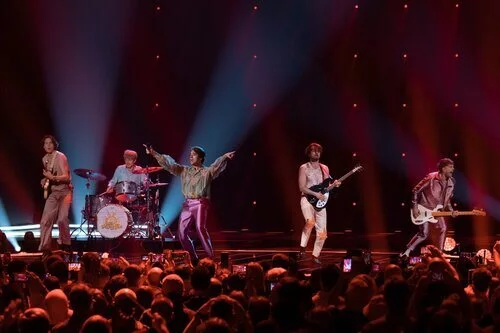 Los representantes de Eslovenia interpretan su tema "Carpe Diem" sobre el escenario de Liverpool 2023 en Eurovisión.