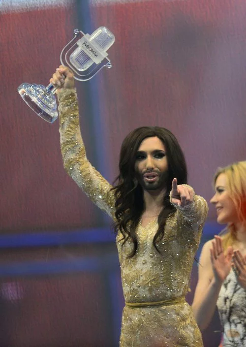 Conchita Wurst levanta el trofeo tras ganar Eurovisión 2014