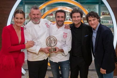 Miki Nadal y Juanma Castaño posan con los jueces de 'MasterChef Celebrity 6'