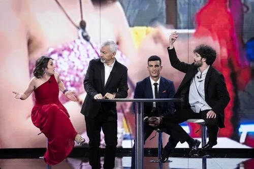 Los finalistas de la segunda edición del programa de Telecinco, Marta Jurado, Adrián Tello y Rafa Martínez, discuten en plató junto a Carlos Sobera diversas imágenes de la edición.