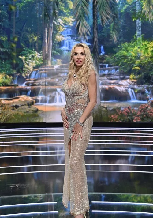 La italiana Valeria Marini posa con un vestido de trasparencias en la gran final de 'Supervivientes 2021' de Mediaset.