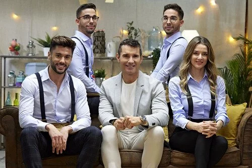 Jesús Vazquez posa junto al equipo de sala de 'First Dates Café, el programa de Cuatro producido por Warner Bros y Mediaset.