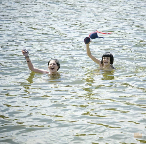 Paula (Angy Fernández) y Yoli (Andrea Duro) se lo quitan todo al entrar al agua.