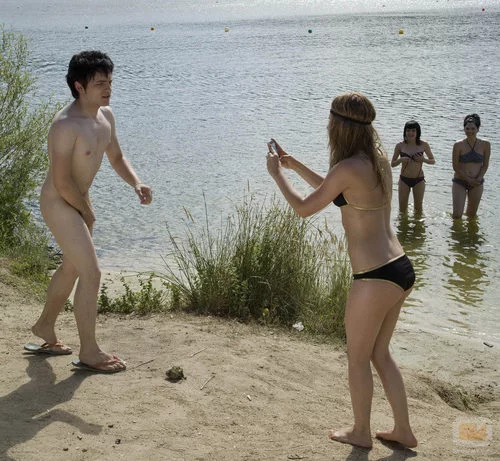 Ruth (Úrsula Corberó) le saca una foto a Gorka (Adam Jezierski) en pelotas.