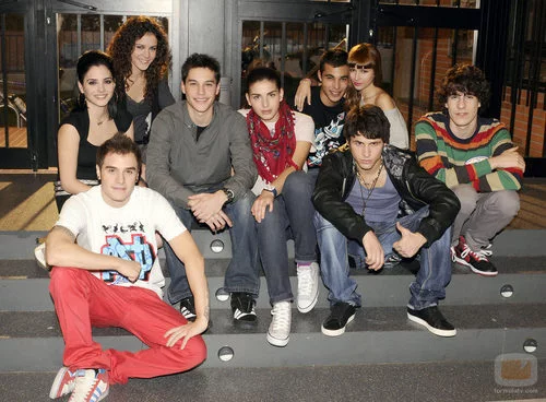 Algunos de los alumnos del Zurbarán posan en la presentación de 'Física o Química'.