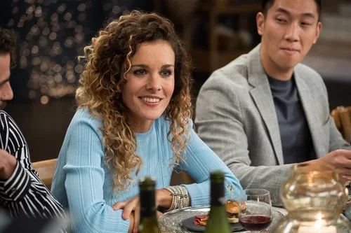 Alma (Sandra Blázquez) y Jan (Andrés Cheung) cenan con el resto de compañeros con los que compartieron grandes aventuras en el instituto Zurbarán.