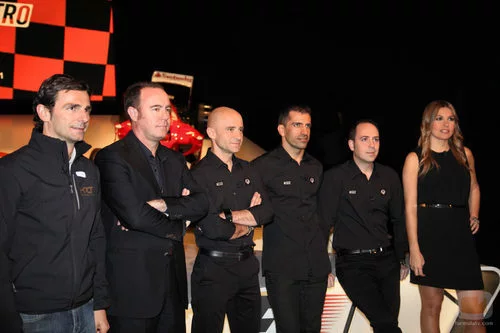 Pedro de la Rosa, Juan Antonio Paredero, Antonio Lobato, Marc Gené, Jacobo Vega y Nira Juanco en la presentación de la Fórmula 1 2012 en Antena 3.