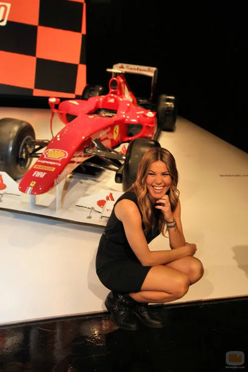 Nira Juanco bromea con los fotógrafos durante la presentación de la Fórmula 1 en Antena 3 para 2012.