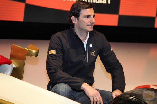 El piloto de HRT, Pedro Martínez de la Rosa posa para los fotógrafos durante la presentación de la Fórmula 1 en Antena 3.
