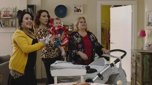 Luci, Merche y Piedad con la hija de Carmen vestida de flamenca en la cuarta temporada de 'Allí abajo'