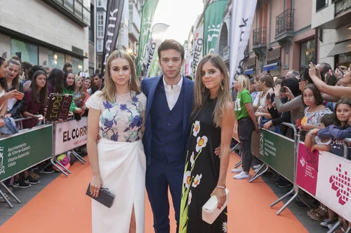 Paula Usero, Ignacio Montes y Paula Díaz, de 'Velvet colección', en la alfombra naranja del FesTVal