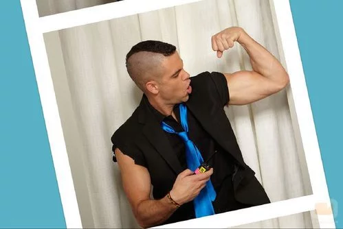 El actor Mark Salling, que interpreta a Noah 'Puck' Puckerman, enseña músculos en el fotomatón de la serie 'Glee'.