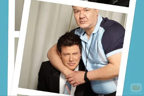 Patrick Gallagher, Ken Tanka en 'Glee', "abraza" a Cor Monteith, Finn Hudson, en el fotomatón de la serie.