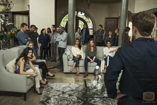 Los actores de la serie estadounidense aparecen grabando una secuencia de 'UnReal' en el salón de una casa.